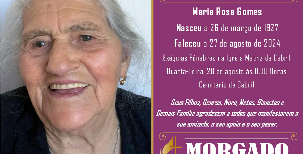 FALECEU a Sra. Maria Rosa Gomes com 97 Anos (Vila Maior, Cabril, Castro Daire)