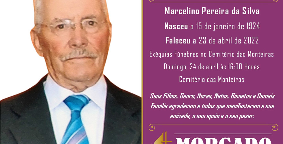 Seus Filhos, Genro, Noras, Netos, Bisnetos e Demais Família na impossibilidade de o fazer pessoalmente, servem-se deste meio, para testemunhar o mais sincero agradecimento a todos que manifestarem a sua amizade, o seu apoio e o seu pesar.